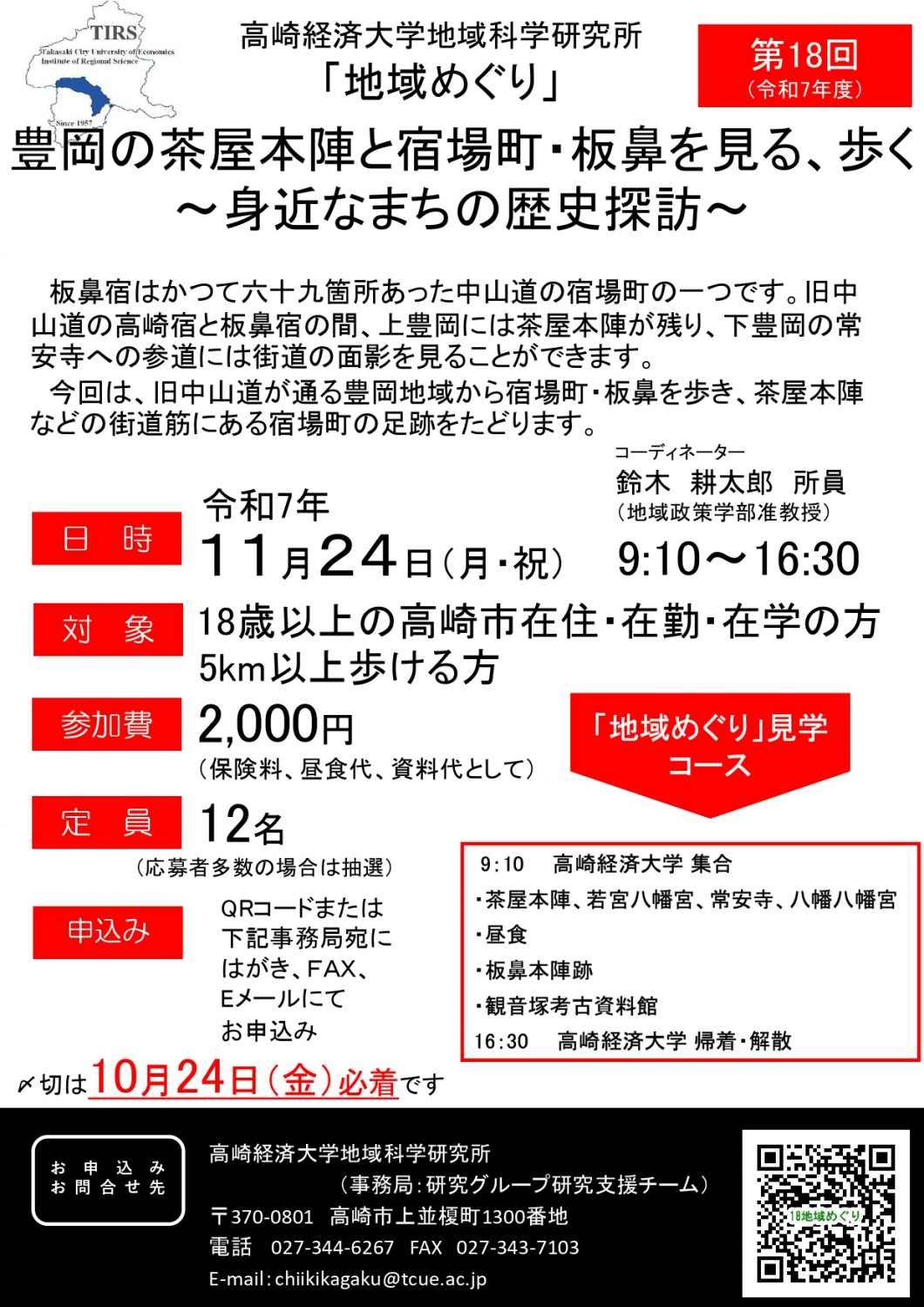 令和7年11月24日(月・祝) 9時10分高崎経済大学集合 16時30分帰着・解散