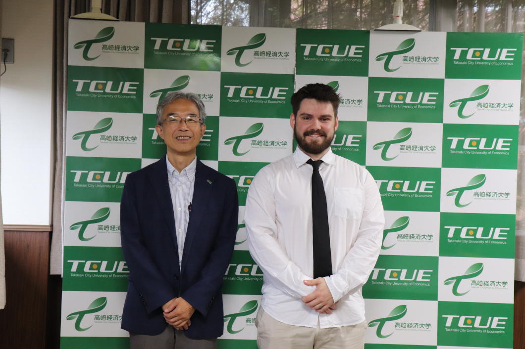 令和7年10月1日(水)、後期から本学で学ぶ交換留学生1名が水口学長を訪問しました。