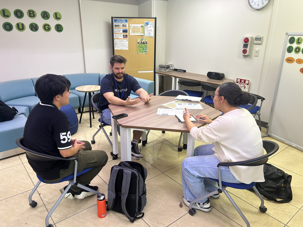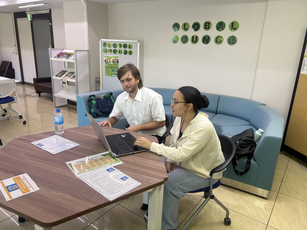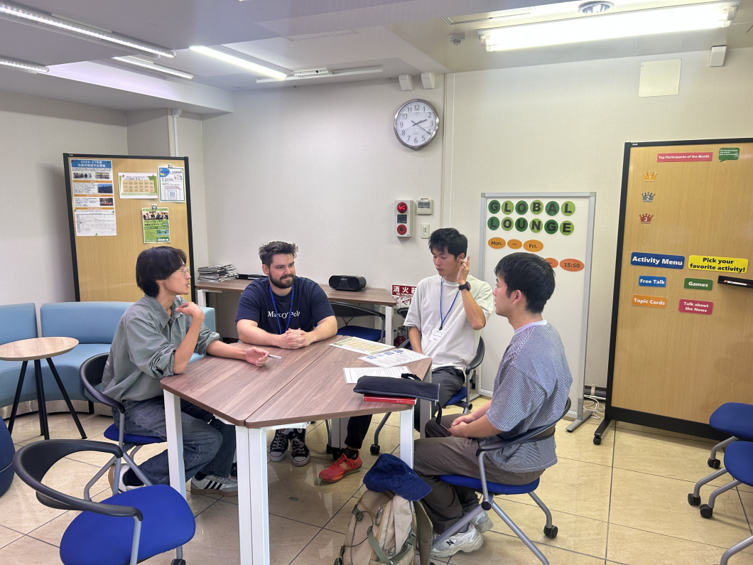 グローバル・ラウンジは、外国語を使って自由に会話を楽しめるキャンパス内の交流スペースです。英語が得意な学生だけでなく、「話してみたい」「国際交流に興味がある」という気持ちがあれば、誰でも参加できます。