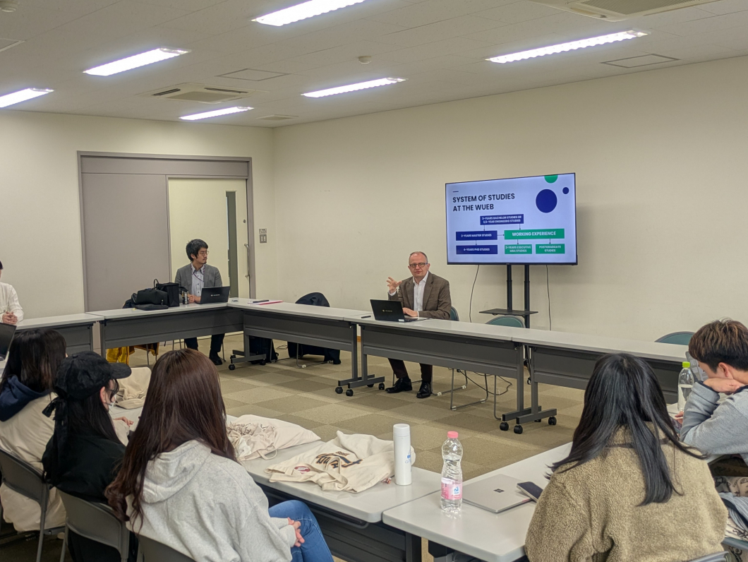 本学の提携校であるポーランドのヴロツワフ経済経営大学との間で、教員の受け入れを行いました。 ヴロツワフ経済経営大学からはマレク・コスニー先生が11月10日から14日まで本学に来学し、大学で授業やミーティングを行います。