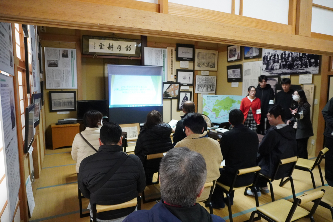 本学地域政策学部観光政策学科の片岡美喜ゼミナールが、JAF(日本自動車連盟)群馬支部と協働で、高崎市倉渕町にてJAF会員向けイベントを企画し、「2027年大河ドラマ主人公 小栗上野介ゆかりの地 倉渕で味わう 味噌とこんにゃく物語」を11月29日(土)に開催しました。