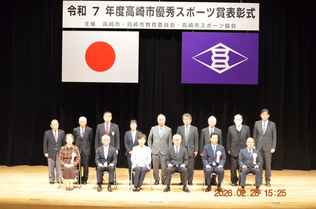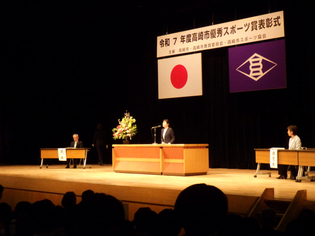 高崎市優秀スポーツ賞表彰式が、群馬音楽センターにて開催され、今年度、スポーツの部門で優秀な成績を収めた団体、個人が表彰されました。本学からは、団体としてソフトボール部が、また個人として地域政策学部1年の丸山左右吾さん(ショートトラックスピードスケート)が表彰されました。
