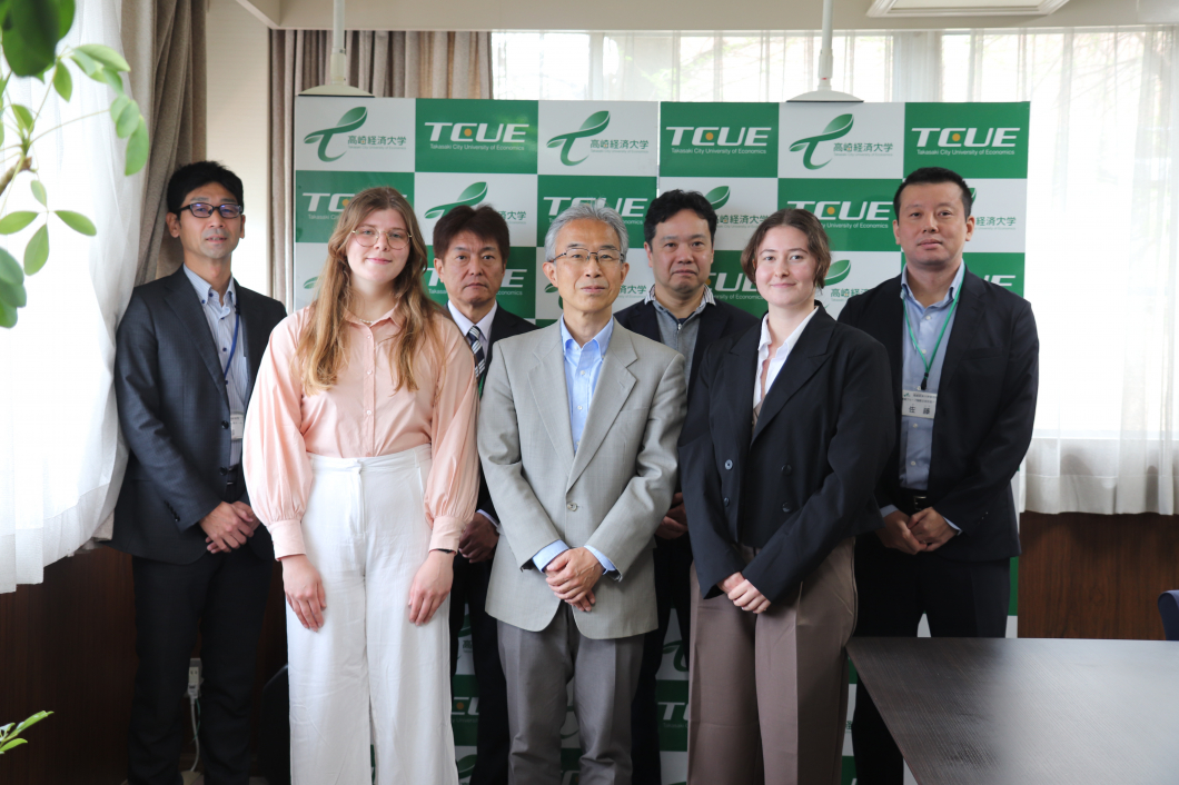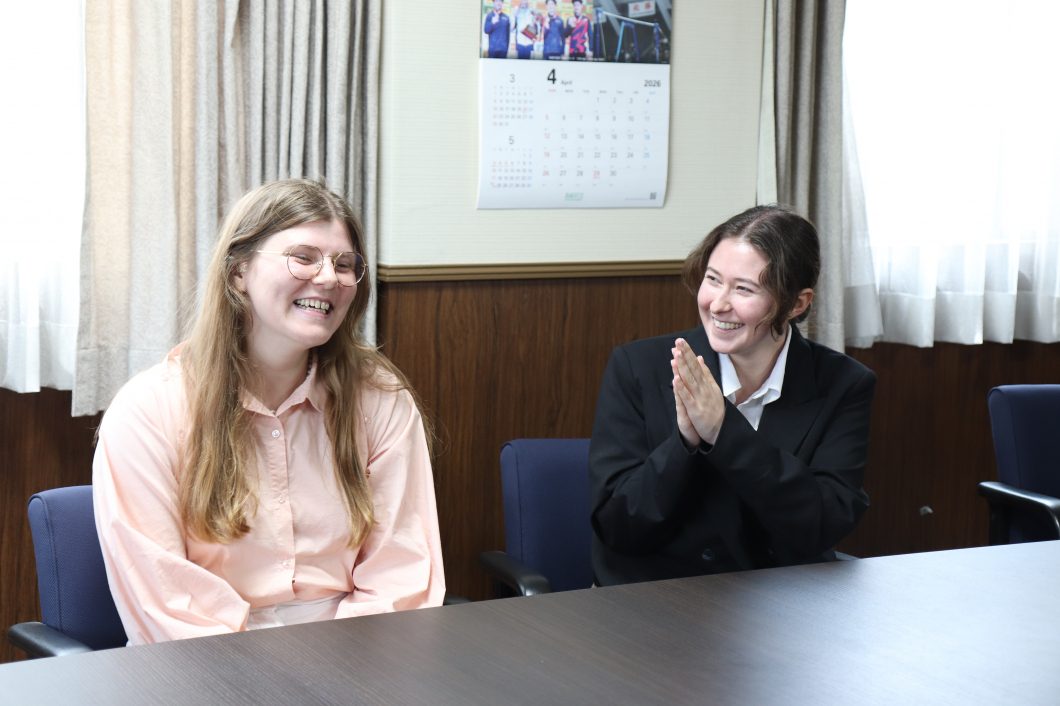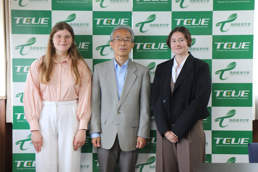 令和8年4月10日(金)、前期から本学で学ぶ交換留学生2名が水口学長を訪問しました。