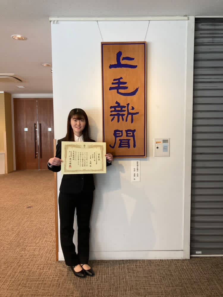 地域政策学部2年生の千葉志織さんが、上毛新聞社主催の「ジュニア上毛文学賞」において青葉の部 特別賞を受賞しました。「ジュニア上毛文学賞」は、群馬県内の学生を対象にした文学賞で、俳句部門と詩部門に分かれています。受賞者は、昨年の上毛ジュニア俳壇・詩壇に投稿された作品の中から選ばれ、千葉さんは俳句部門での受賞となりました。本学では今後も、学生の創造的な取り組みや社会での活躍を積極的に発信してまいります。